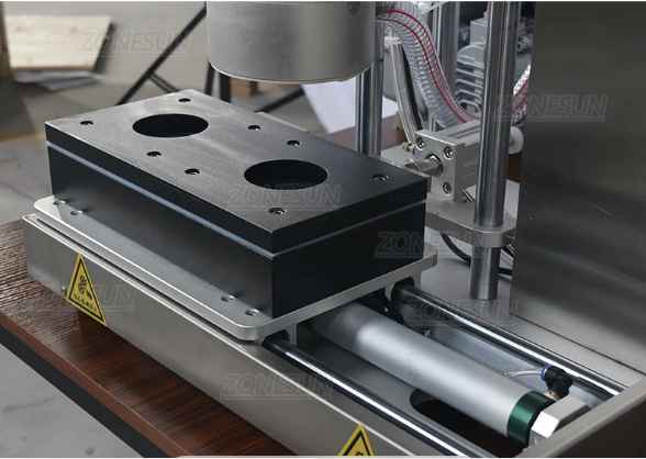 Masina are doua sloturi pentru recipiente, care in mod automat pe rand se plaseza pe pozitie de capsat, asigurand astfel o produstivitate sporita. Plasarea recipientului cu capac in slot se efectuiaza manual. Capsarea se efectuiaza in mod automat.